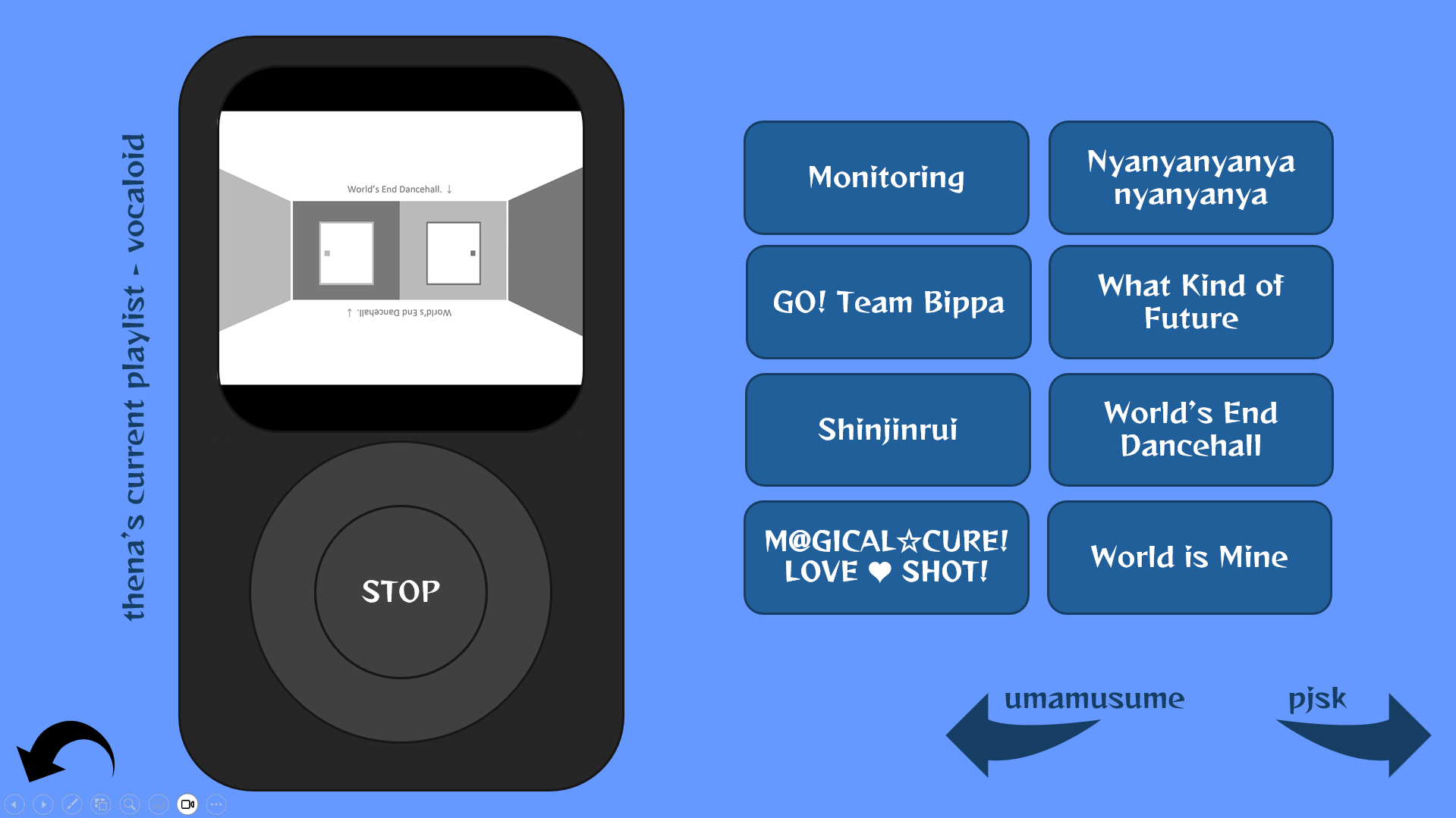 when using the "playlist" section, please press the STOP button between songs, as there is an otherwise unavoidable visual bug - this is a technical restraint, unfortunately.